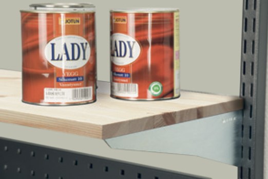 Kraftigt hyllplan i gediget trä för förvaring av lådor och småprylar. Tjocklek 18 mm.